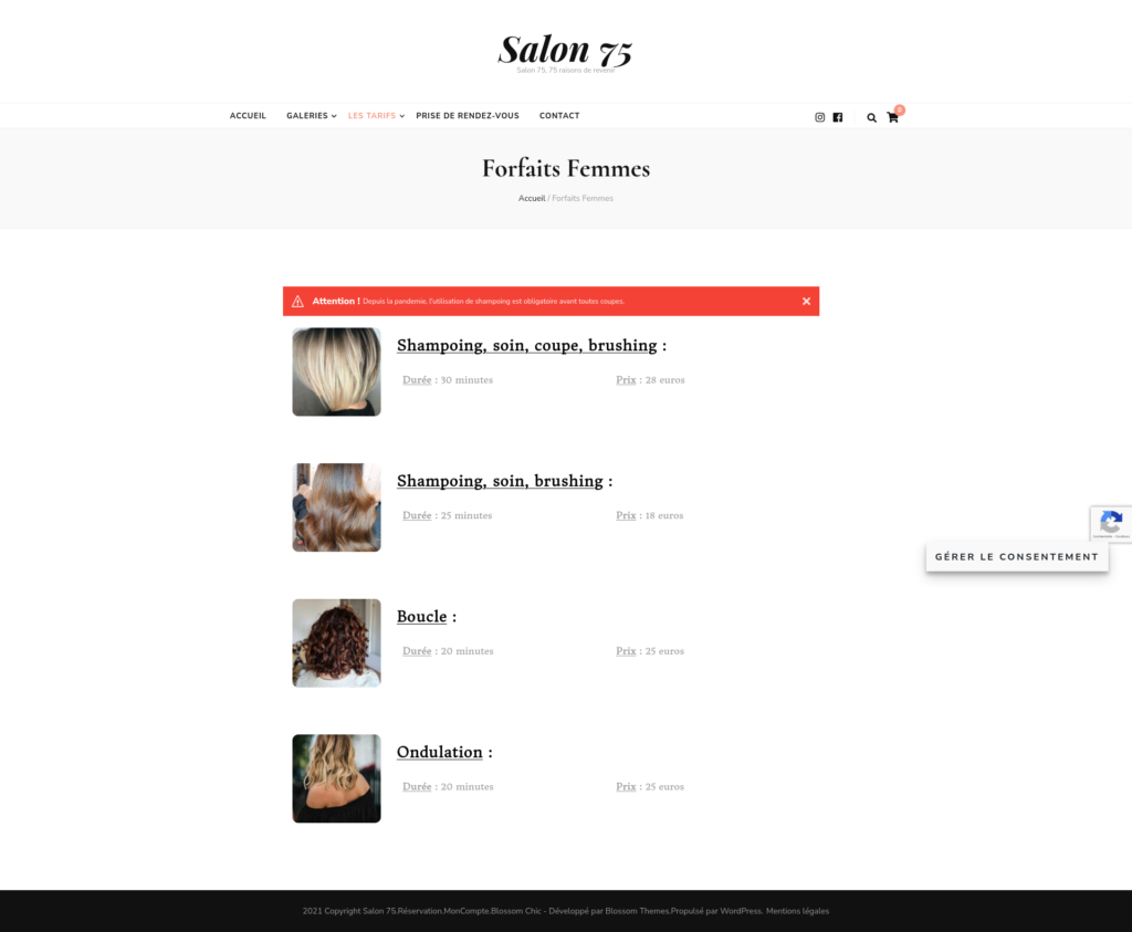 Le thème utilisé est « Blossom Chic » car il est plus sobre et correspond plus à l’identité d’un salon de coiffure.