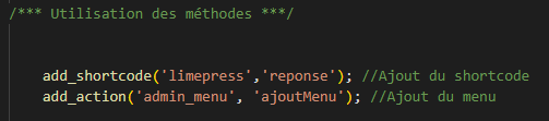 Dans cet exemple, nous ajoutons un code court. Pour l’utiliser, il faut taper : [limepress].