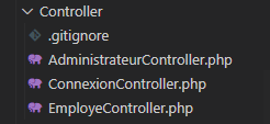 Le projet est divisé en 3 contrôleurs. Un pour la connexion, un autre pour l’interface employé et un dernier pour l’interface administrateur.