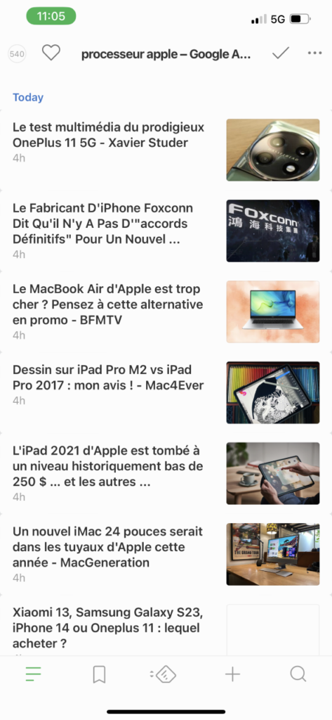 J’ai lié Google Alerts à Feedly en le configurant autour de quelques mots clés.
